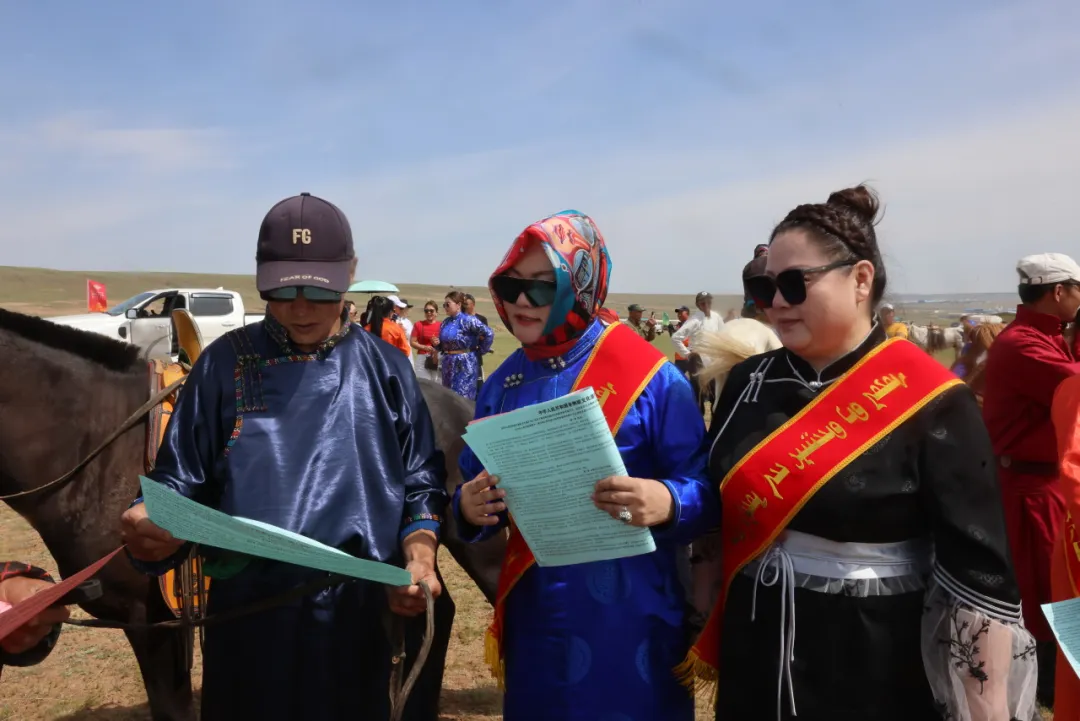 賽事不僅為馬術競技提供舞臺,也為傳承傳統文化搭建重要平臺。活動現場,2025年“文化和自然遺產日”阿巴嘎旗“人民的非遺 人民共享”主題宣傳展板格外醒目,詳細介紹了本地非遺項目的歷史淵源、文化內涵和傳承現狀,讓更多群眾了解非遺。同時,現場還發放了《中華人民共和國非物質文化遺產法》傳單,增強了群眾對非遺保護的法律意識。
